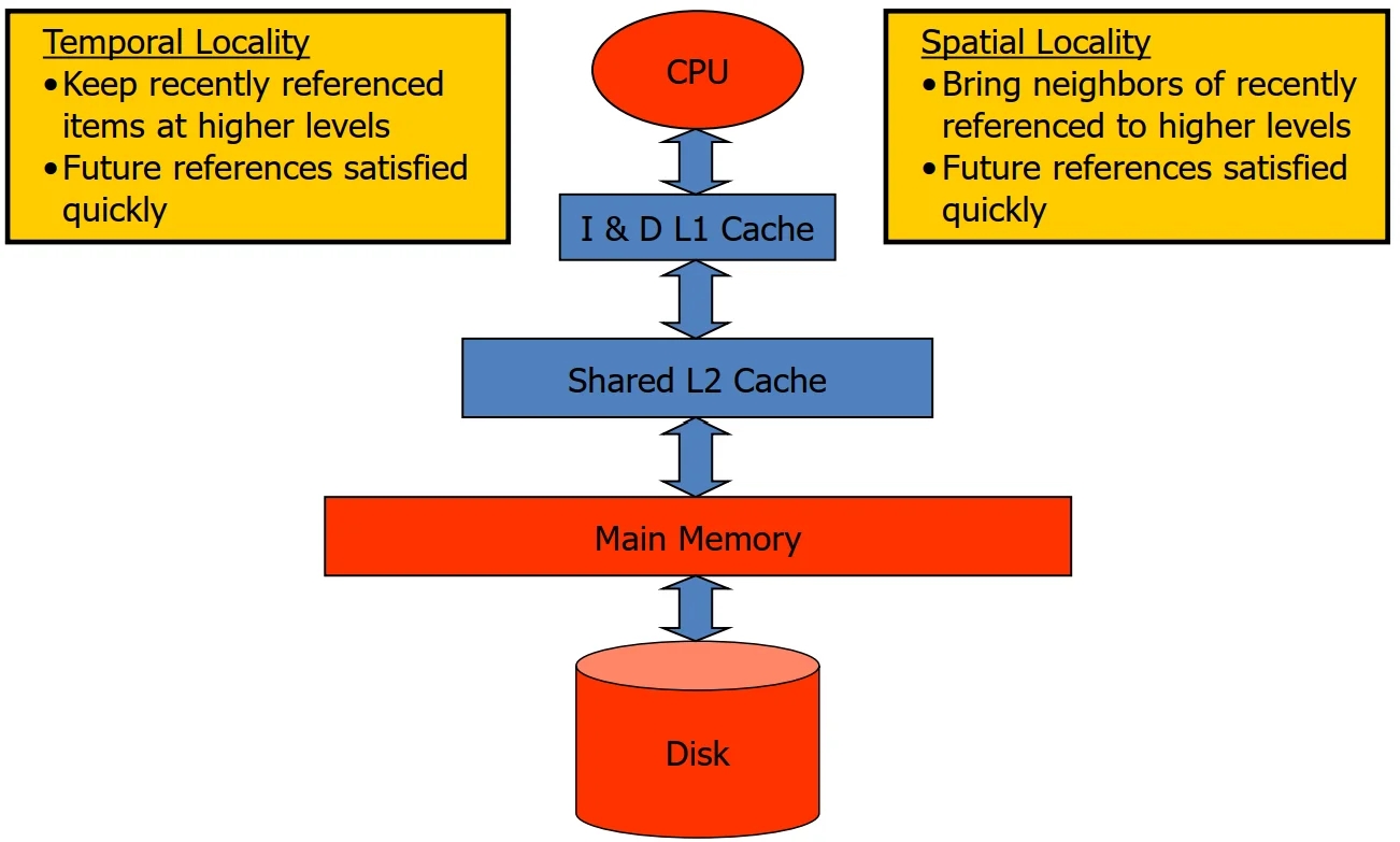 Caches have fixed policies, hardware FSM for control, pipeline stall
