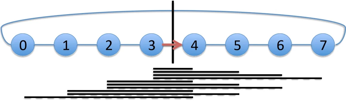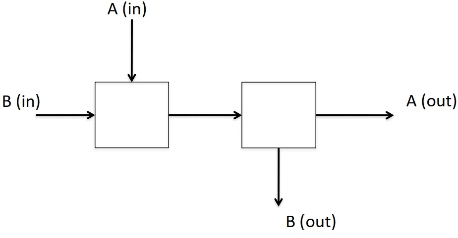 End: tail departs output port