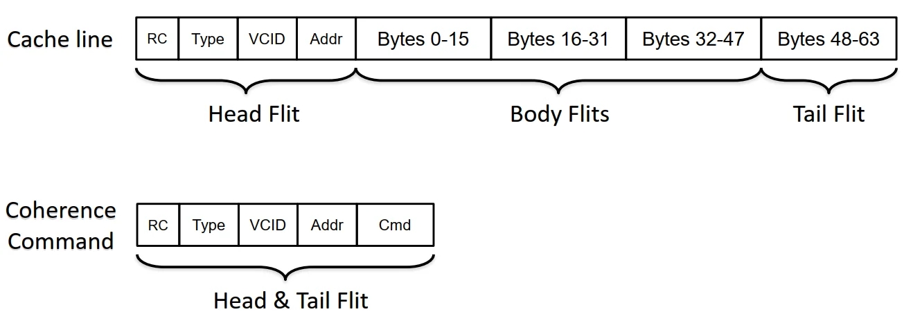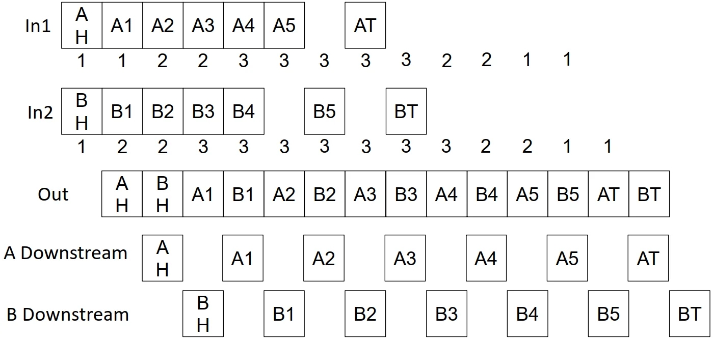In example: on downstream links, flits of each packet are available every other cycle
