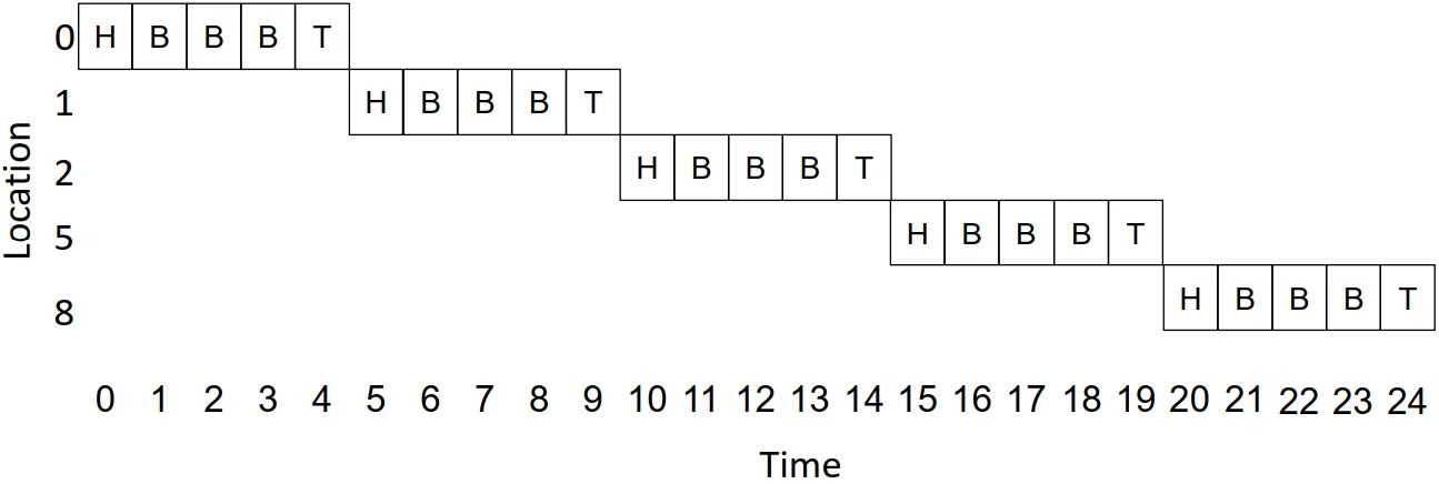 Time-Space Diagram: Store and Forward