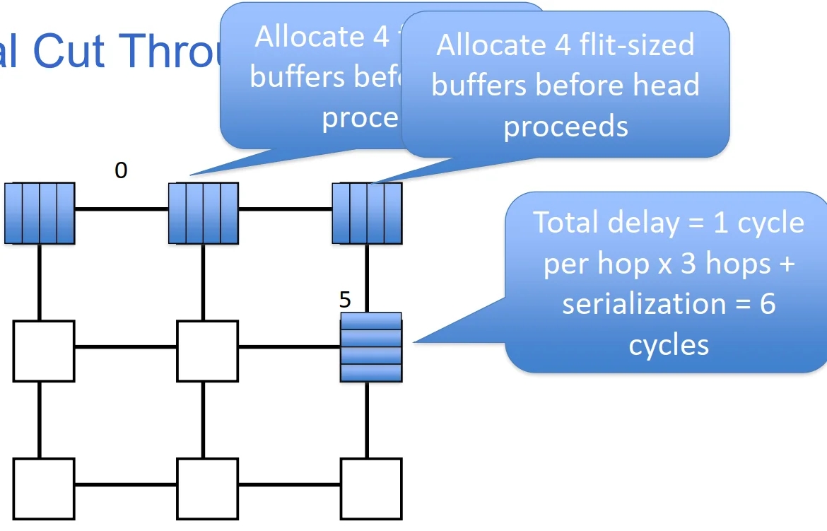 Head flit waits at router until entire packet is received before being forwarded to the next hop