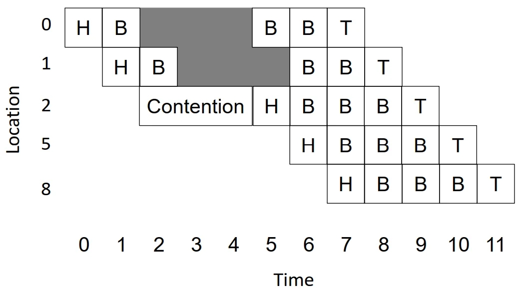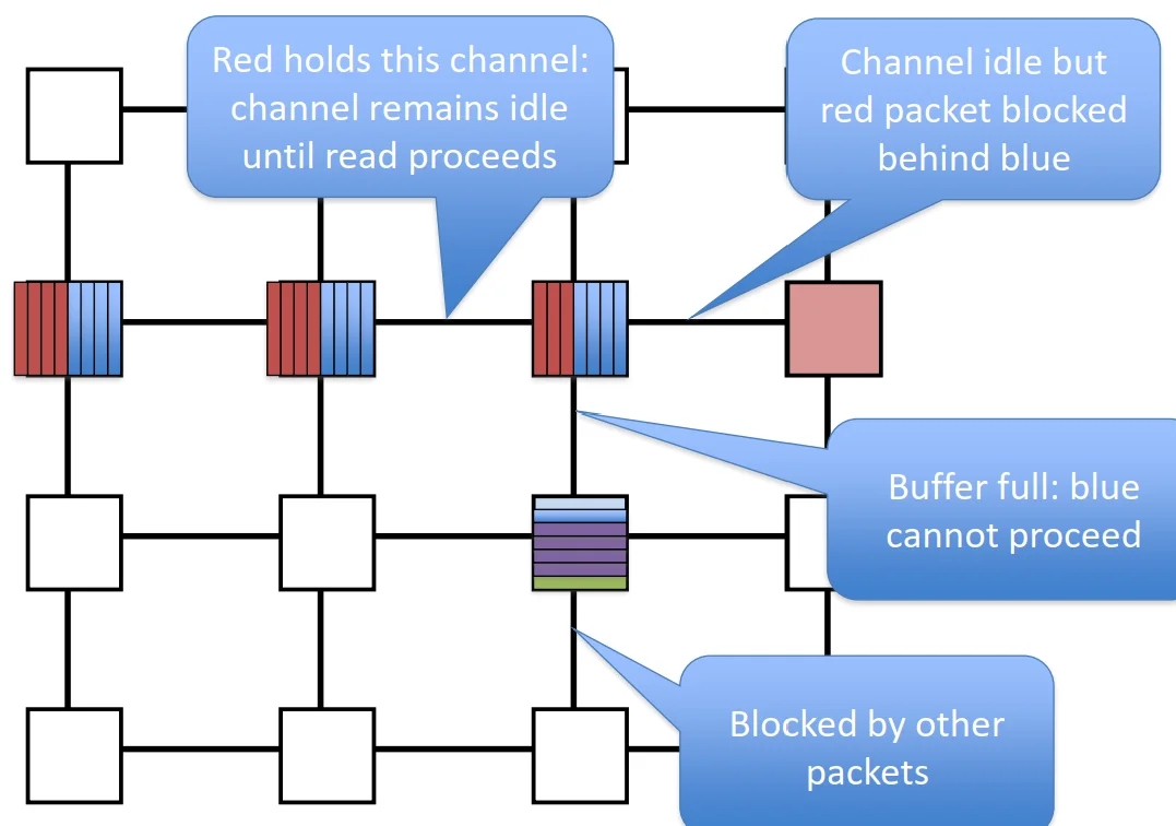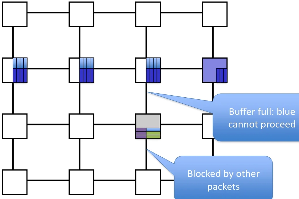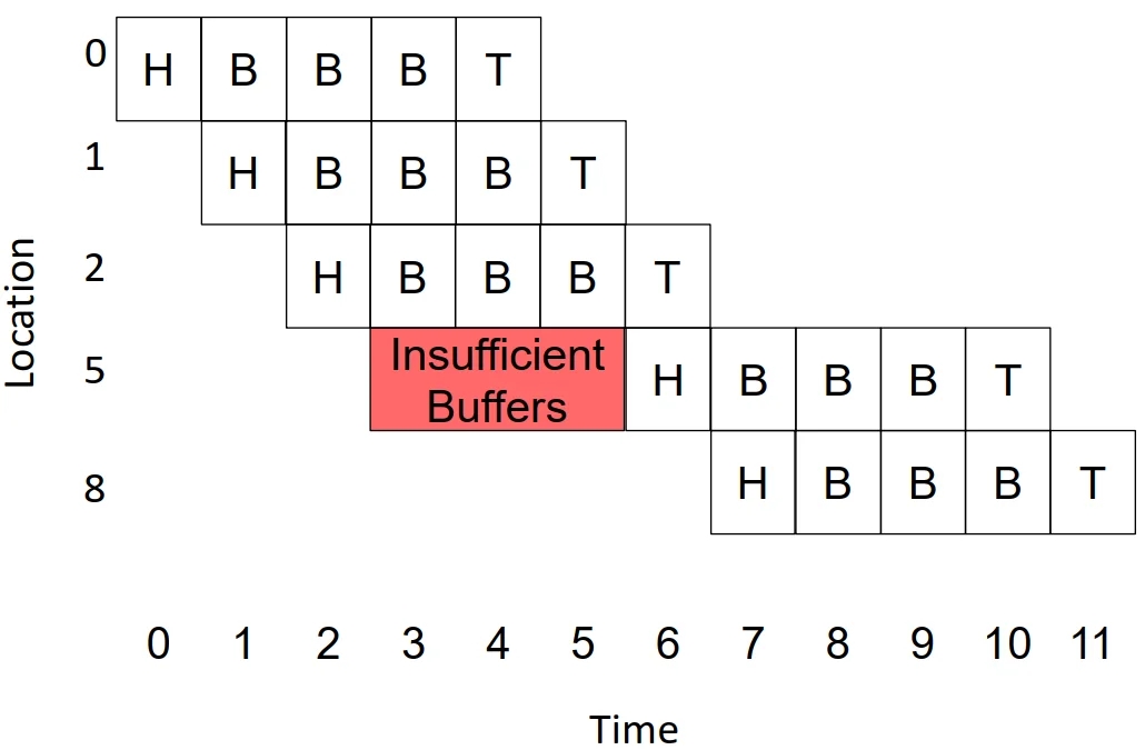 Poor link utilization: if head flit becomes blocked, all links spanning length of packet are idle