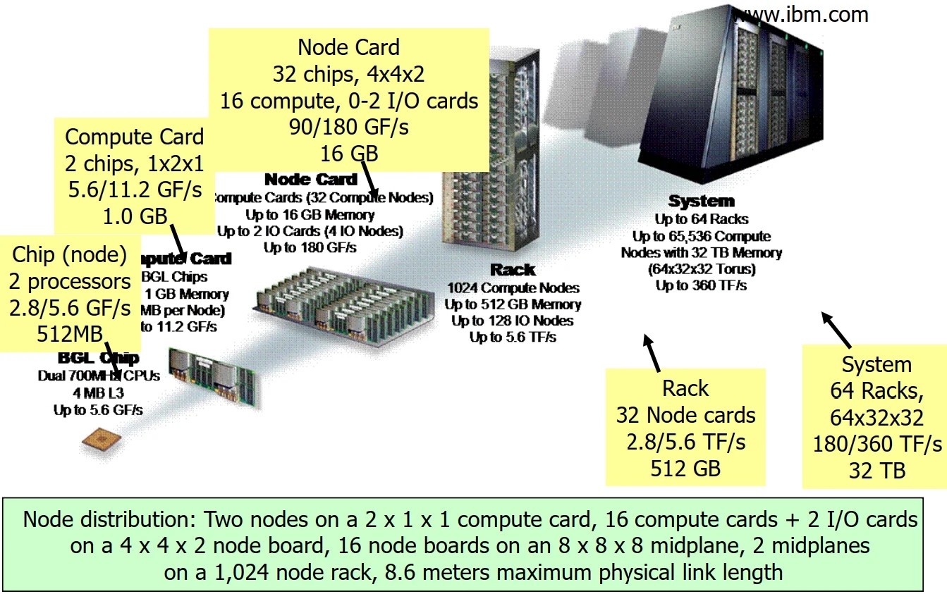 ›IBM Blue Gene/L supercomputer (64K nodes, each with 2 processors)