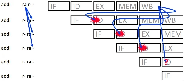 (R/I, LW, SW, Br or JR)reads a register written by IA(R/I or LW)dist(IA, IB) <= dist(ID, WB) = 3