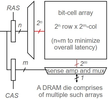 注: 图为二维存储阵列. SRAM 和 DRAM 结构基本相同.