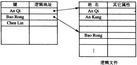:在顺序文件基础上,增加索引表,其中存放每条记录的关键字(或记录号)与其文件位置的对应关系。
