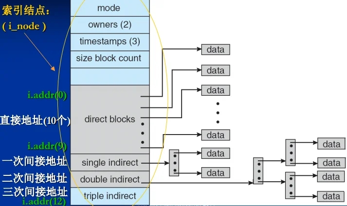 如是栈中最后一个磁盘块号,则从外存调入下组磁盘块号(就在这个最后一个磁盘块内);
