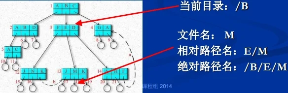相对路径名:以除根结点外的任意结点为起点的路径名。