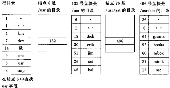 分解路径名成各组成部分,然后依次查找各目录名、文件名。
