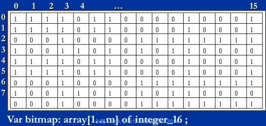 i = b/n ; j = b % n; // n为位示图宽度,常为字长