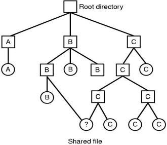 利用符号链文件,其中存储被共享的文件路径名称。\