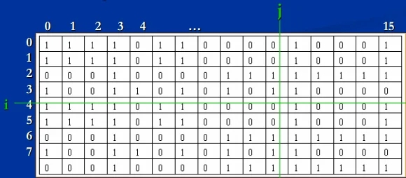 磁盘块号b → 位示图行号i、列号j ( b, i, j均从0开始计数 ):\
