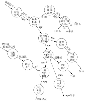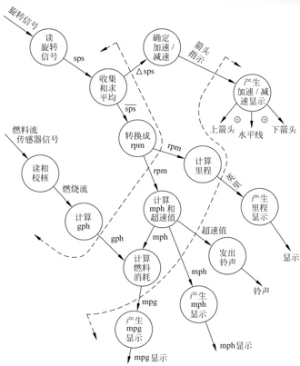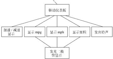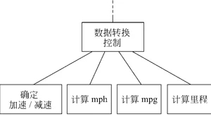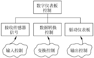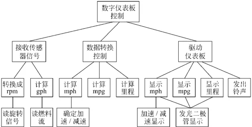 对于数字仪表板的例子,第一级分解得出的结构如图所示。每个控制模块的名字表明了为它所控制的那些模块的功能。