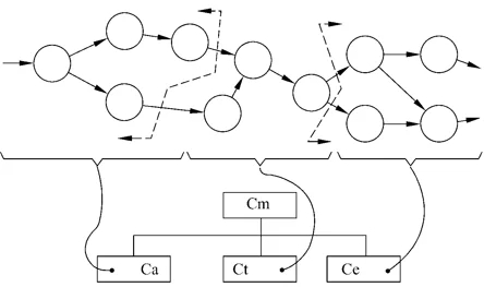 完成第二级分解的方法是,从变换中心的边界开始逆着输入通路向外移动,把输入通路中每个处理映射成软件结构中Ca控制下的一个低层模块;然后沿输出通路向外移动,把输出通路中每个处理映射成直接或间接受模块Ce控制的一个低层模块;最后把变换中心内的每个处理映射成受Ct控制的一个模块。